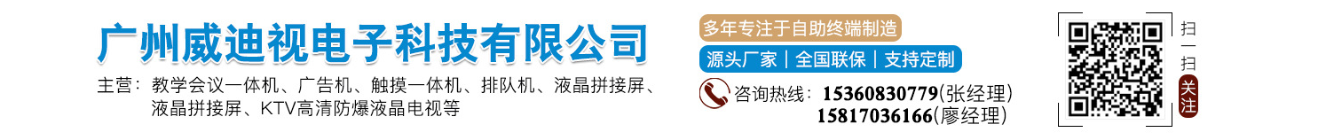廣州威迪視電子科技有限公司是一家專業從事防爆液晶電視機、電視電腦一體機、觸摸廣告機、觸摸查詢機、觸控教學機、拼接屏等系列產品的軟硬件研發(fā)、生產、銷售,應用于一體的高科技企業。